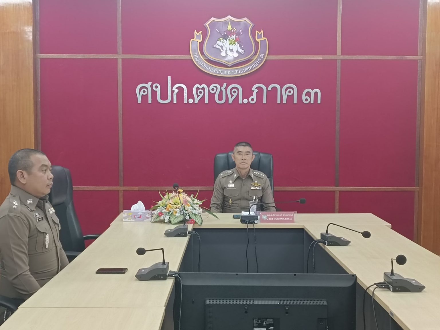 เมื่อ 31 พ.ค. 68 เวลา 16.00 น. พ.ต.อ.วิศาลพงศ์ สร้อยกุลบดี รอง ผบก.ตชด.ภาค 3, พ.ต.ท.วิมาณ ฉิมพล สว.ฝอ.บก.ตชด.ภาค 3 (ผงป.)พร้อมด้วยเจ้าหน้าที่งานที่เกี่ยวข้อง เข้าร่วมการประชุมติดตามสถานการณ์การประชุมสภาผู้แทนราษฎร เพื่อพิจารณา พ.ร.บ.ร่างงบประมาณรายจ่ายประจำปีงบประมาณ พ.ศ.2569 (วาระที่ 1) โดยมี พล.ต.ท.กฤษฎา สุรเชษฐพงษ์ ผู้ช่วย ผบ.ตร. เป็นประธาน ศอ.สน.รัฐสภา,