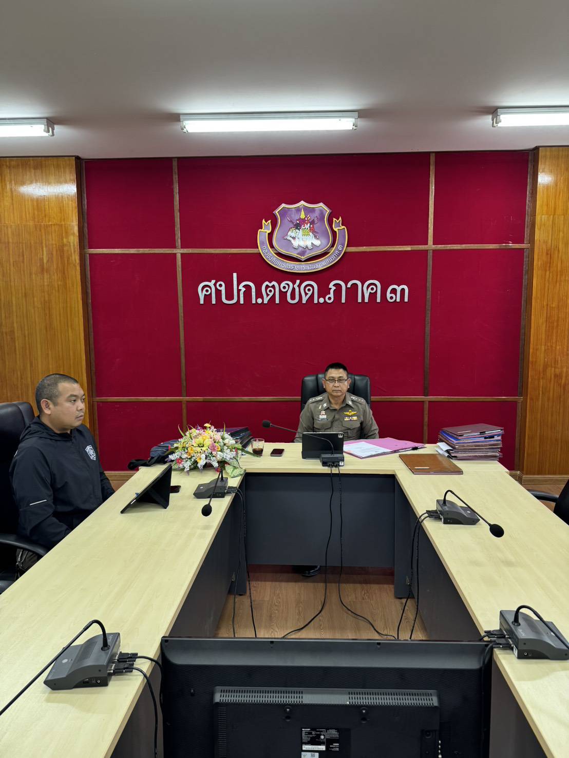 เมื่อ 271 ม.ค.69 เวลา 15.30 น. พ.ต.อ.รังสิมันต์ สงเคราะห์ธรรม รอง ผบก.ตชด.ภาค 3 พร้อมด้วย พ.ต.ท.วิมาณ ฉิมพล สว.ฝอ.ฯ (ผงป.) เข้าร่วมการประชุมเตรียมความพร้อมการรักษาความปลอดภัยและความสงบเรียบร้อยการจัดการเลือกตั้ง ตร. (ศลต.ตร.) โดยมี พล.ต.อ.สำราญ นวลมา รอง ผบ.ตร.(มค) เป็นประธานการประชุม
