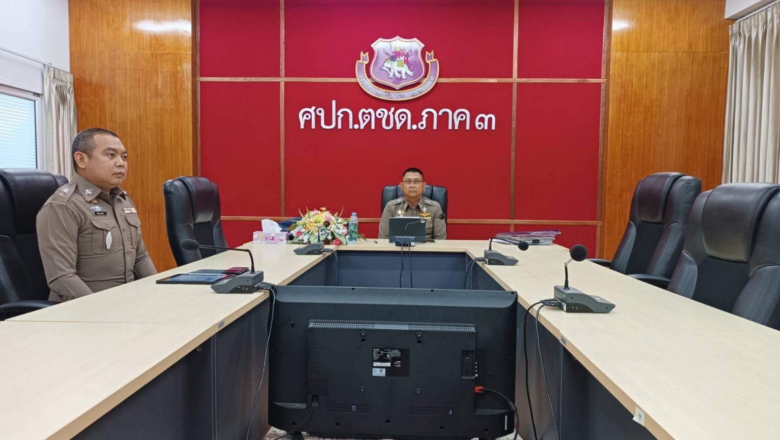 เมื่อ 20 พ.ค.68 เวลา 10.00 น. ผบก.ตชด.ภาค 3 มอบหมายให้ พ.ต.อ.รังสิมันต์ สงเคราะห์ธรรม รอง ผบก.ตชด.ภาค 3/รอง ผอ.ศอ.ปส.บก.ตชด.ภาค 3 พร้อมด้วย พ.ต.ท.วิมาณ ฉิมพล สว.ฝอ.ฯ/หน.ศอ.ปส.บก.ตชด.ภาค 3 เข้าร่วมการประชุมเตรียมความพร้อมปิดล้อมตรวจค้นแหล่งพักคอยยาเสพติดพื้นที่ภาคเหนือ ผ่านระบบประชุมทางไกลผ่านจอภาพ Zoom โดยมี พล.ต.อ.ไกรบุญ ทรวดทรง รอง ผบ.ตร./ผอ.ศอ.ปส.ตร. เป็นประธานการประชุม