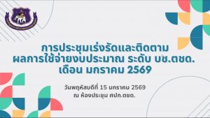 เข้าร่วมการประชุมเร่งรัดและติดตามผลการใช้จ่ายงบประมาณ ระดับ บช.ตชด. เดือน ม.ค.2569 ผ่านระบบการประชุมทางไกล (Video Conference) ณ ห้องประชุม ศปก.ตชด.ภาค 3 โดยมี พล.ต.ต.ชวนนท์ ประเทศรัตน์ รองผบช.ตชด.(บร1) เป็นประธานการประชุม