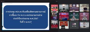 เมื่อ 3 ม.ค.67 เวลา 09.00 น. พ.ต.อ.ริณวัฒน์ ภูวัฒนติกานต์ รอง ผบก.ตชด.ภาค 3 เข้าร่วมการประชุม ศปก.ตร.ขับเคลื่อนติดตามสถานการณ์ การชี้แจง ร่าง พ.ร.บ.งบประมาณรายจ่ายประจำปีงบประมาณ พ.ศ.2567 โดยมี พล.ต.อ.สราวุฒิ การพานิช รอง ผบ.ตร.เป็นประธานการประชุม