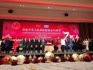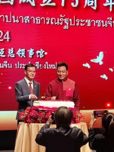 เมื่อ 26 ก.ย.67 เวลา 18.00 น. พ.ต.อ.อพิวัฒน์ กลั่นวารี พร้อมด้วย พ..ตท.หญิงทัศรินทร์ ภิบาลแทนและ พ.ต.ท.อนัญวัฒน์ รัตนวิชัย ได้เข้าร่วมงานเลี้ยงเฉลิมฉลองครบรอบ 75 ปี แห่งการสถาปนาสาธารณรัฐประชาชนจีน ( ค.ศ.1949-2024 )หรือ “วันชาติจีน” ประจำปี 2567 ซึ่งสถานกงสุลใหญ่แห่งสาธารณรัฐประชาชนจีนประจำเชียงใหม่จัดขึ้นที่ โรงแรมแมรีออทเชียงใหม่ อ.เมืองเชียงใหม่ จังหวัดเชียงใหม่ โดยมีนายเฉิน ไห่ผิง กงสุลใหญ่แห่งสาธารณรัฐประชาชนจีนประจำเชียงใหม่ และนายนิรัตน์ พงษ์สิทธิถาวร ผู้ว่าราชการจังหวัดเชียงใหม่ ผู้แทนฝั่งไทย – จีน กล่าวเฉลิมฉลองและร่วมกันตัดเค้ก