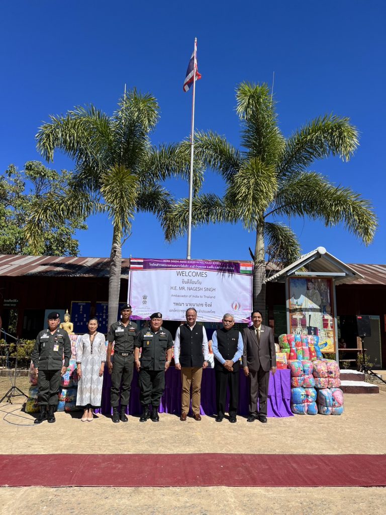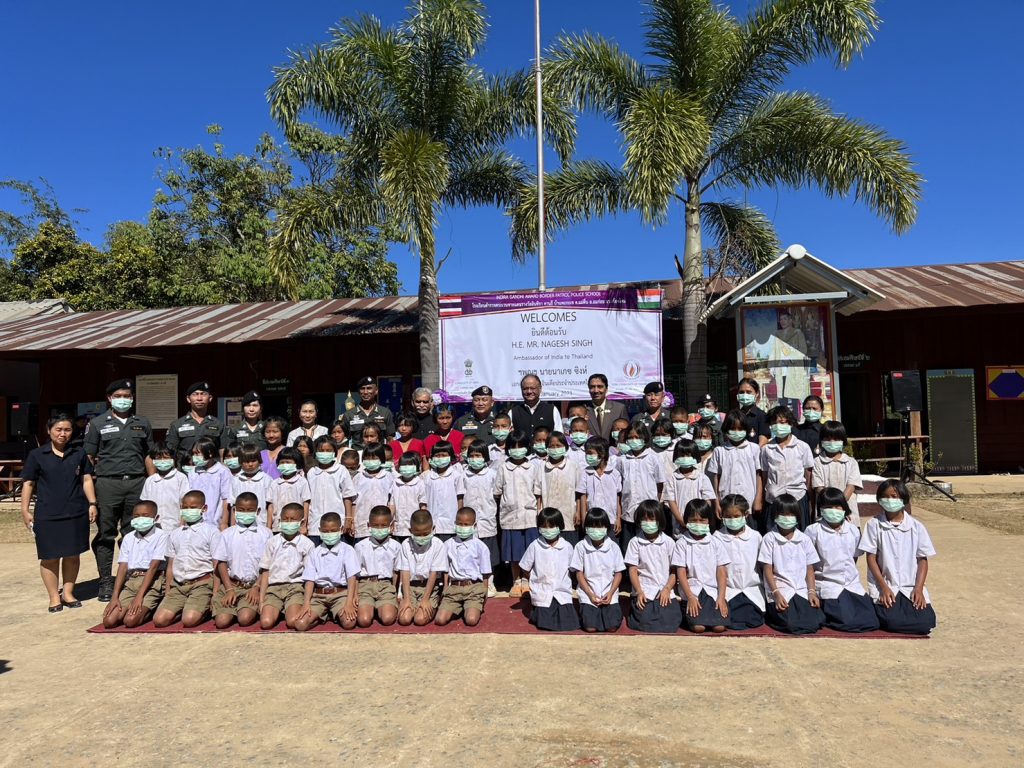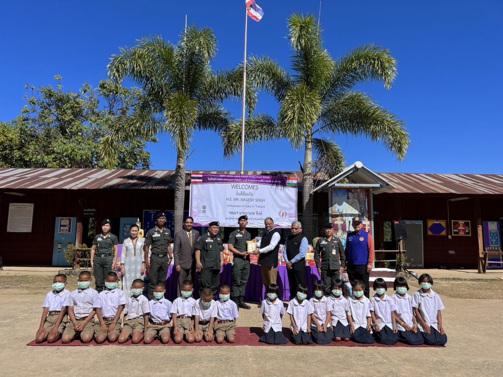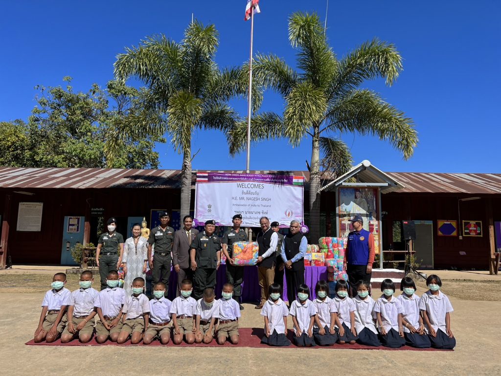 เมื่อ 14 ม.ค.66 เวลาประมาณ 11.40 น. พล.ต.ต.ประกอบ พลเตชา ผบก.ตชด.ภาค 3 พร้อมด้วย พ.ต.อ.ปรีชา วังปรีชา รอง ผบก.ตชด.ภาค 3 พ.ต.อ.อภิชาติ รักพงษ์ ผกก.ตชด.33 ร่วมต้อนรับ ฯ พณฯ นาย นาเกซ ซิงห์ เอกอัครราชทูตอินเดียประจำประเทศไทยพร้อมคณะ เดินทางมาตรวจเยี่ยมและมอบสิ่งของให้แก่เด็กนักเรียนโรงเรียนตำรวจตระเวนชายแดนรางวัลอินทิรา คานธี ต.แม่ตื่น อ.อมก๋อย จ.เชียงใหม่ รับฟังบรรยายสรุป การดำเนินงานของโรงเรียน เยี่ยมชมการเรียนการสอน สุขศาลาพระราชทาน โครงการเกษตรเพื่ออาหารกลางวัล พร้อมมอบสิ่งของอุปกรณ์หนังสือและของขวัญวันเด็ก โดยมี ร.ต.อ.หญิง ภครัตน์ เอนกบุณย์ รอง ผบ.ร้อย 332 จ.ส.ต.ไพโรจน์ หล้าเผือก รรท. ครูใหญ่ คณะครูและนักเรียนร่วมให้การต้อนรับการตรวจเยี่ยมดังกล่าว