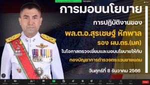 เมื่อ 8 ธ.ค.66 เวลา 12.30 น. พ.ต.อ.อพิวัฒน์ กลั่นวารี รอง ผบก.ตชด.ภาค 3, รอง ผกก.ฝอ.บก.ตชด.ภาค 3 , สว.(ทุกสายงาน) ผบ.ร้อย , พร้อม จนท.ที่เกี่ยวข้อง เข้าร่วมประชุมการมอบนโยบาย การปฏิบัติงานของ พล.ต.อ.สุรเชษฐ์ หักพาล รอง ผบ.ตร.(มค) ผ่านระบบประชุมทางไกลผ่านจอภาพ Vido conference ณ ห้องประชุมดารารัศมี 2 บก.ตชด.ภาค 3
