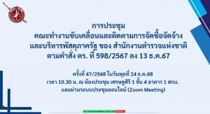 เมื่อ 24 ธ.ค.68 เวลา 10.30 น. พ.ต.อ.ศุภวัฒน์ ศรีชัยชนะ รอง ผบก.ตชด.ภาค 3 พร้อมด้วย ร.ต.อ.พันไมล์ ตานุ รอง สว.ฝอ.บก.ตชด.ภาค 3 (กบ.) ร่วมประชุมคณะทำงานขับเคลื่อนและการติดตามการจัดซื้อจัดจ้างและบริหารพัสดุภาครัฐ ของ สำนักงานตำรวจแห่งชาติ ตามคำสั่ง ตร. ที่ 598/2567 ลง 13 ธ.ค.67 ครั้งที่ 47/2568 ผ่านระบบออนไลน์ (Zoom meeting) ณ ห้องประชุม ศปก.ตชด.ภาค 3 โดยมี พล.ต.ท.กฤษฎา สุรเชษฐพงษ์ ผู้ช่วย ผบ.ตร. (บร 3) เป็นประธานการประชุม