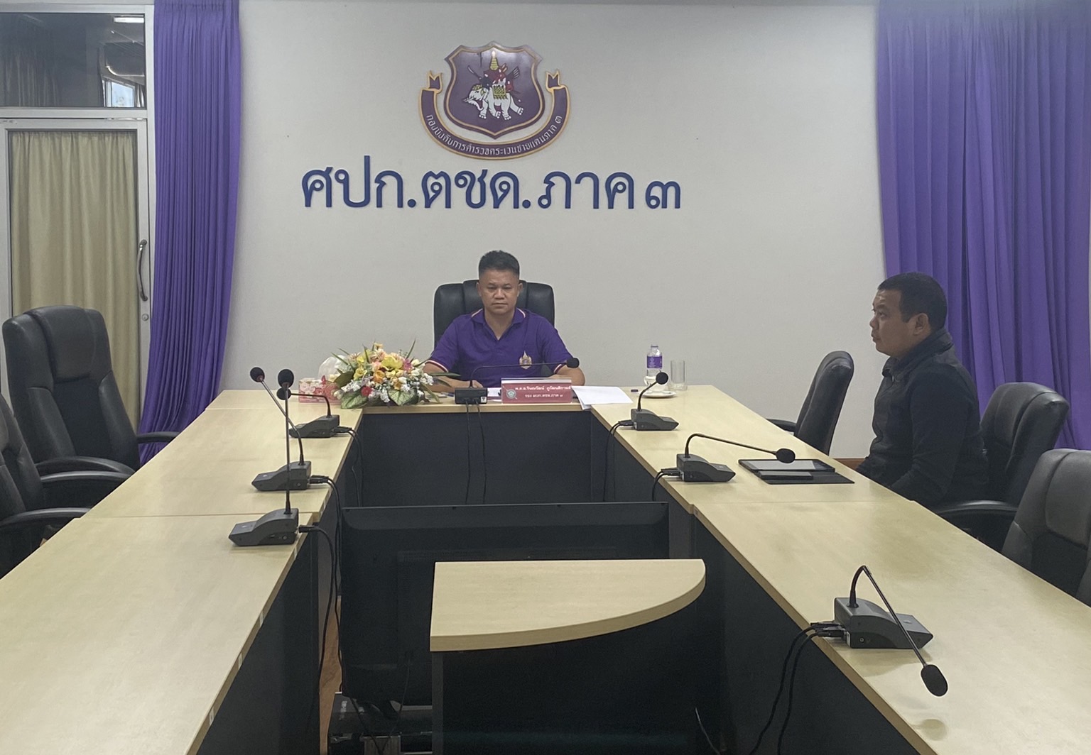เมื่อ 22 ก.พ.67 เวลา 13.00 น. พ.ต.อ.รินณวัฒน์ ภูวัฒนติกานต์ รอง ผบก.ตชด.ภาค 3 พร้อมด้วย พ.ต.ต.วิมาณ ฉิมพล สว.ฝอ.บก.ตชด.ภาค 3(ผงป.) เข้าร่วมประชุมคณะทำงานยกร่างแผนปฏิบัติราชการ บช.ตชด. ประจำปีงบประมาณ พ.ศ.2567 ผ่านระบบ Video Conference