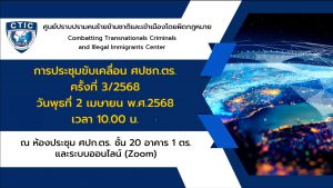 เมื่อ 2 เม.ย. 68 เวลา 10.00 น. พ.ต.อ.วิศาลพงศ์ สร้อยกุลบดี รอง ผบก.ตชด.ภาค 3, พ.ต.ท.สุขสวัสดิ์ ไชยสาร รอง ผกก.ฝอ.บก.ตชด.ภาค 3, พ.ต.ท.วิมาณ ฉิมพล สว.ฝอ.บก.ตชด.ภาค 3 (ผงป.) พร้อมด้วยเจ้าหน้าที่งานที่เกี่ยวข้อง เข้าร่วมประชุมทางไกล (Video Conference) การประชุมขับเคลื่อนงานของ ศปชก.ตร. ครั้งที่ 3/2568 โดยมี พล.ต.อ.ธนา ชูวงศ์ รอง ผบ.ตร.(สส.)/ผอ.ศปชก.ตร. เป็นประธานฯ