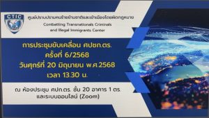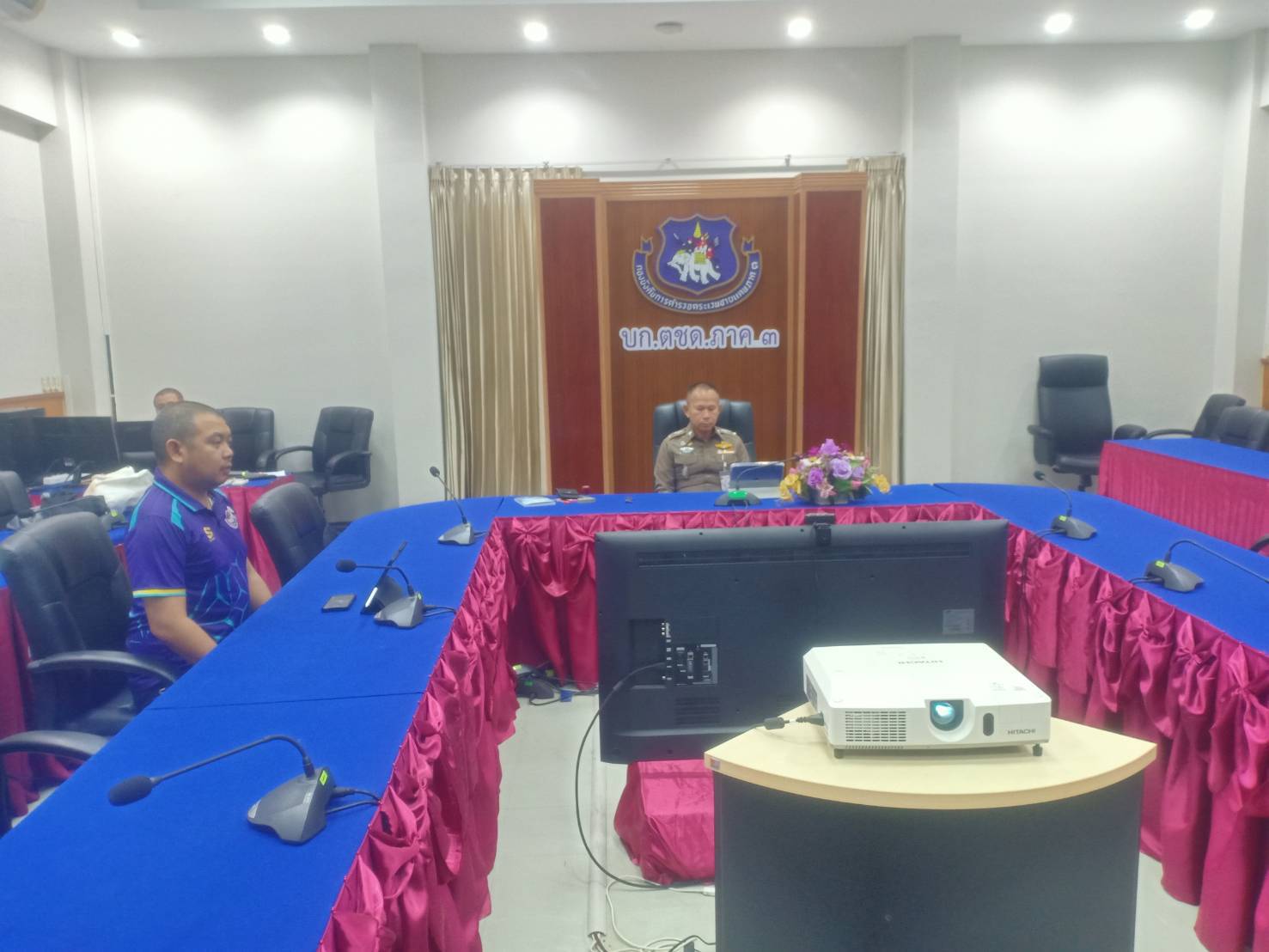 เมื่อ 20 มิ.ย. 68 เวลา 13.30 น. พ.ต.ท.สุขสวัสดิ์ ไชยสาร รอง ผกก.ฝอ.บก.ตชด.ภาค 3, พ.ต.ท.วิมาณ ฉิมพล สว.ฝอ.บก.ตชด.ภาค 3 (ผงป.) พร้อมด้วยเจ้าหน้าที่งานที่เกี่ยวข้อง เข้าร่วมประชุมทางไกล (Video Conference) การประชุมขับเคลื่อนงานของ ศปชก.ตร. ครั้งที่ 6/2568 โดยมี พล.ต.อ.ธนา ชูวงศ์ รอง ผบ.ตร.(สส.)/ผอ.ศปชก.ตร. เป็นประธานฯ