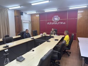 เมื่อ 26 พ.ค.68 เวลา 10.00 น. พ.ต.อ.วิศาลพงศ์ สร้อยกุลบดี รอง ผบก.ตชด.ภาค 3 พร้อมเจ้าหน้าที่ที่เกี่ยวข้อง เข้าร่วมประชุมทางไกล (video conference) ขับเคลื่อน ศปก.ตร. เฝ้าฟังติดตามสถานการณ์ ณ ห้องประชุม ศปก.ตชด.ภาค 3