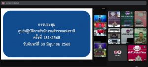 เมื่อ 30 มิ.ย. 68 เวลา 09.00 น. พ.ต.อ.วิศาลพงศ์ สร้อยกุลบดี รอง ผบก.ตชด.ภาค 3 พร้อมด้วย เจ้าหน้าที่ที่เกี่ยวข้อง เข้าร่วมประชุมทางไกล ขับเคลื่อน ศปก.ตร. เฝ้าฟังติดตามสถานการณ์ โดยมี พล.ต.ต.พีรพล โชติกเสถียร ผบก.ประจำ สง.ผบ.ตร. เป็นประธาน ณ ห้องประชุม ศปก.ตชด.ภาค 3