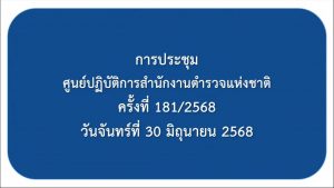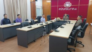 เมื่อ 30 มิ.ย. 68 เวลา 09.00 น. พ.ต.อ.วิศาลพงศ์ สร้อยกุลบดี รอง ผบก.ตชด.ภาค 3 พร้อมด้วย เจ้าหน้าที่ที่เกี่ยวข้อง เข้าร่วมประชุมทางไกล ขับเคลื่อน ศปก.ตร. เฝ้าฟังติดตามสถานการณ์ โดยมี พล.ต.ต.พีรพล โชติกเสถียร ผบก.ประจำ สง.ผบ.ตร. เป็นประธาน ณ ห้องประชุม ศปก.ตชด.ภาค 3