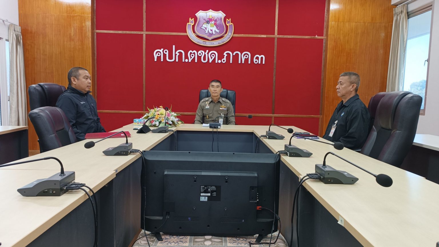 เมื่อ 22 ธ.ค. 68 เวลา 10.00 น. พ.ต.อ.วิศาลพงศ์ สร้อยกุลบดี รอง ผบก.ตชด.ภาค 3 พร้อมด้วย พ.ต.ท.สุขสันต์ อินทร์สุข สว.ฝอ.บก.ตชด.ภาค 3 (ขว.) และ พ.ต.ท.วิมาณ ฉิมพล สว.ฝอ.บก.ตชด.ภาค 3 (ผงป.) เจ้าหน้าที่ที่เกี่ยวข้อง เข้าร่วมประชุมทางไกล ขับเคลื่อน ศปก.ตร. โดยมี พล.ต.ท. ศิลปคมณ์ เอี่ยมวงศ์ ผบช.ประจำ สง.ผบ.ตร. เป็นประธาน ณ ห้องประชุม ศปก.ตชด.ภาค 3