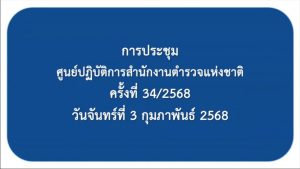 เมื่อ 3 ก.พ. 68 เวลา 09.00 น. พ.ต.อ.วิศาลพงศ์ สร้อยกุลบดี รอง ผบก.ตชด.ภาค 3 พร้อมเจ้าหน้าที่งานที่เกี่ยวข้อง เข้าร่วมประชุมทางไกล (video conference) ขับเคลื่อน ศปก.ตร. เฝ้าฟังติดตามสถานการณ์ ณ ห้องประชุม ศปก.ตชด.ภาค 3