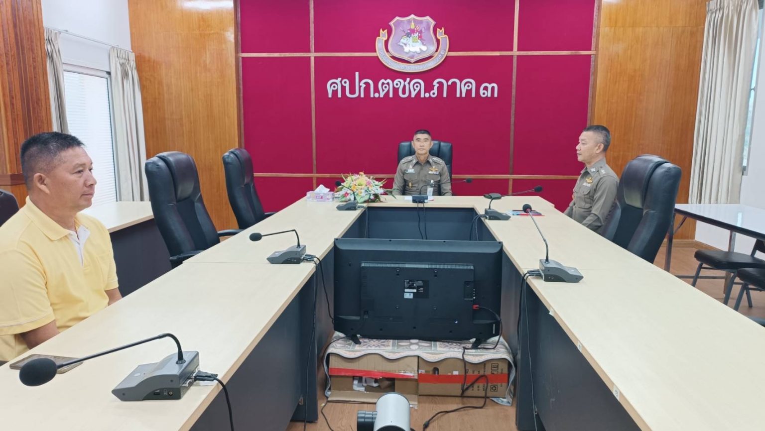 เมื่อ 3 มี.ค. 68 เวลา 09.00 น. พ.ต.อ.วิศาลพงศ์ สร้อยกุลบดี รอง ผบก.ตชด.ภาค 3 พร้อมเจ้าหน้าที่ที่เกี่ยวข้อง เข้าร่วมประชุมทางไกล (video conference) ขับเคลื่อน ศปก.ตร. เฝ้าฟังติดตามสถานการณ์ ณ ห้องประชุม ศปก.ตชด.ภาค 3