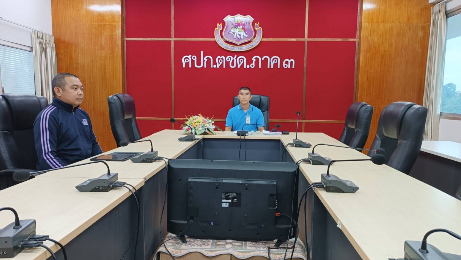 พ.ต.อ.วิศาลพงศ์ สร้อยกุลบดี รอง ผบก.ตชด.ภาค 3 ,พ.ต.ท.วิมาณ ฉิมพล สว.ฝอ.บก.ตชด.ภาค 3 (ผงป.)พร้อมด้วยเจ้าหน้าที่งานที่เกี่ยวข้อง เข้าร่วมประชุมทางไกล (video conference) การประชุม ศปก.ตร. ติดตามสถานการณ์การชี้แจงร่าง พ.ร.บ.งบประมาณ รายจ่ายประจำปีงบประมาณ พ.ศ.2569 ของสภาผู้แทนราษฎร (วาระที่ 2 – 3 )