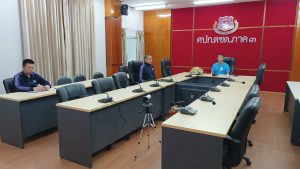 พ.ต.อ.วิศาลพงศ์ สร้อยกุลบดี รอง ผบก.ตชด.ภาค 3 ,พ.ต.ท.วิมาณ ฉิมพล สว.ฝอ.บก.ตชด.ภาค 3 (ผงป.)พร้อมด้วยเจ้าหน้าที่งานที่เกี่ยวข้อง เข้าร่วมประชุมทางไกล (video conference) การประชุม ศปก.ตร. ติดตามสถานการณ์การชี้แจงร่าง พ.ร.บ.งบประมาณ รายจ่ายประจำปีงบประมาณ พ.ศ.2569 ของสภาผู้แทนราษฎร (วาระที่ 2 – 3 )