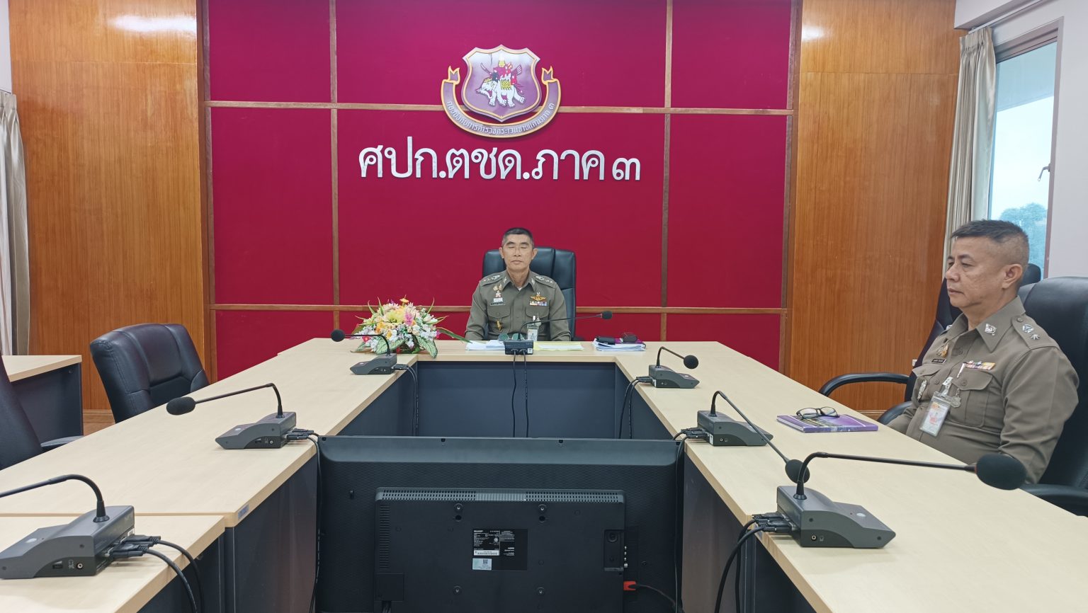 เมื่อ 1 ก.ย. 68 เวลา 09.00 น. พ.ต.อ.วิศาลพงศ์ สร้อยกุลบดี รอง ผบก.ตชด.ภาค 3 พร้อมด้วย พ.ต.ท.สุขสันต์ อินทร์สุข สว.ฝอ.บก.ตชด.ภาค 3 (ขว.) และเจ้าหน้าที่ที่เกี่ยวข้อง เข้าร่วมประชุมทางไกล ศปก.ตร. ติดตามสถานการณ์ประจำวัน โดยมี พล.ต.ต. พิทักษ์ อุทัยธรรม รอง ผบช.ประจำ สง.ผบ.ตร. เป็นประธาน ณ ห้องประชุม ศปก.ตชด.ภาค 3