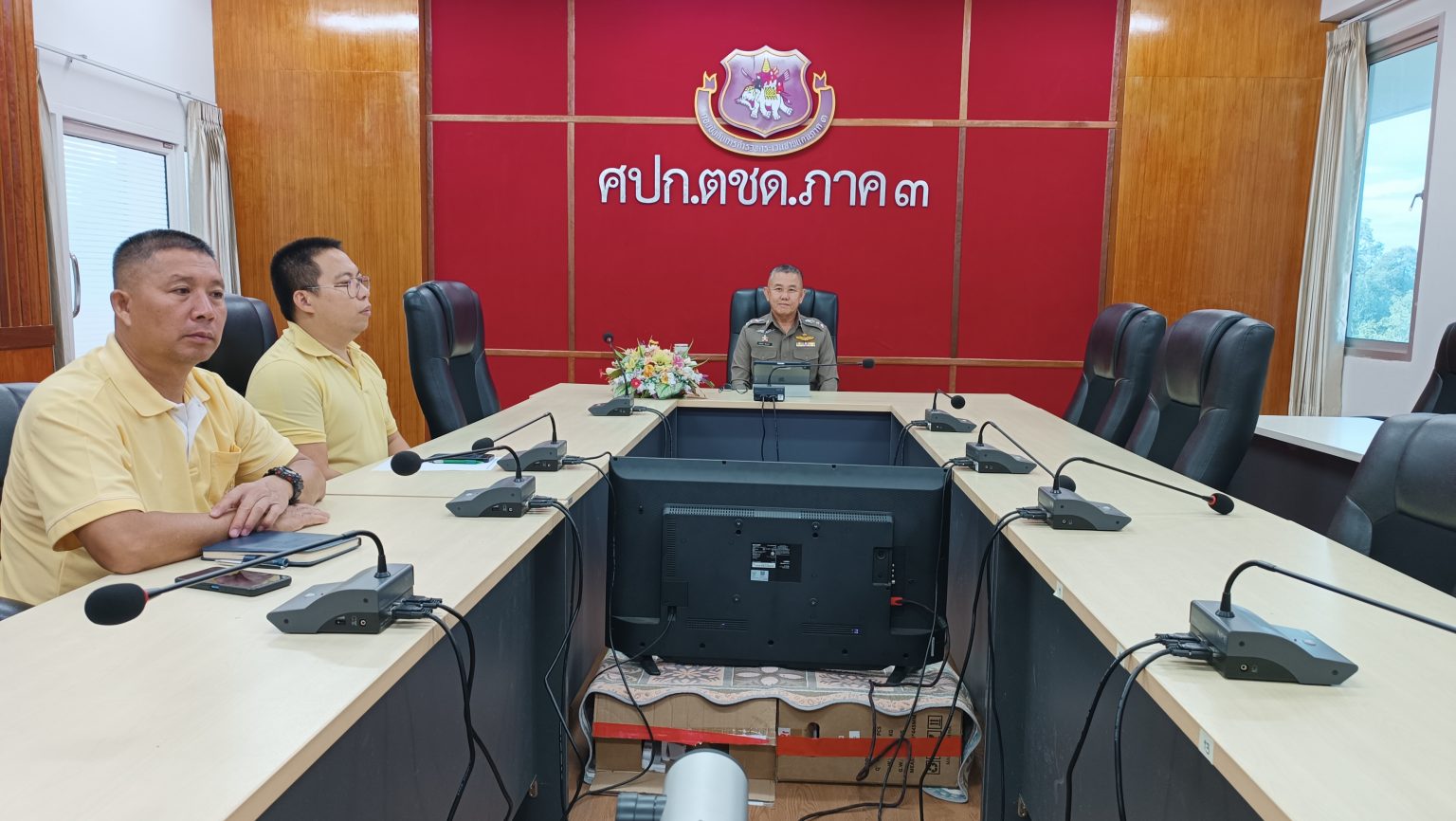 เมื่อ 6 ต.ค. 68 เวลา 09.00 น. พ.ต.อ.อภิชาติ รักพงษ์ รอง ผบก.ตชด.ภาค 3 พร้อมด้วย ร.ต.อ.อนุสรณ์ ปัญญา รอง สว.ฝอ.บก.ตชด.ภาค 3(ทส.), ร.ต.ต.ประภาส พรมเพ็ชร รอง สว.ฝอ.บก.ตชด.ภาค 3(ขว.) และเจ้าหน้าที่ที่เกี่ยวข้อง เข้าร่วมประชุมทางไกล ศปก.ตร. ติดตามสถานการณ์ประจำวัน โดยมี พล.ต.ท.ศิลปคมณ์ เอี่ยมวงศ์ ผบช.ประจำ สง.ผบ.ตร. เป็นประธาน ณ ห้องประชุม ศปก.ตชด.ภาค 3