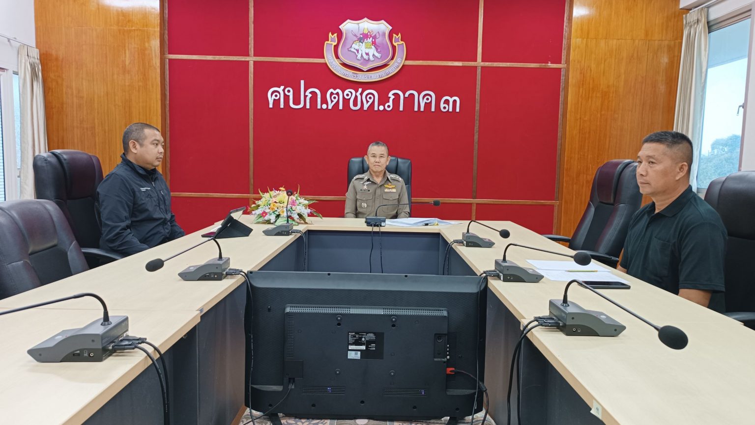 เมื่อ 8 ธ.ค. 68 เวลา 10.00 น. พ.ต.อ.อภิชาติ รักพงษ์ รอง ผบก.ตชด.ภาค 3 พร้อมด้วย พ.ต.ท.วิมาณ ฉิมพล สว.ฝอ.บก.ตชด.ภาค 3 (ผงป.) และเจ้าหน้าที่ที่เกี่ยวข้อง เข้าร่วมประชุมทางไกล ศปก.ตร. ติดตามสถานการณ์ประจำวัน โดยมี พล.ต.อ. สำราญ นวลมา รอง ผบ.ตร. เป็นประธาน ณ ห้องประชุม ศปก.ตชด.ภาค 3
