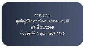 เมื่อ 2 ก.พ. 69 เวลา 09.00 น. พ.ต.อ.วิศาลพงศ์ สร้อยกุลบดี รอง ผบก.ตชด.ภาค 3 พร้อมด้วย เจ้าหน้าที่ที่เกี่ยวข้อง เข้าร่วมประชุมทางไกล ศปก.ตร. โดยมี พล.ต.ท.ศิลปคมณ์ เอี่ยมวงศ์ ผบช.ประจำ สง.ผบ.ตร. เป็นประธาน ณ ห้องประชุม ศปก.ตชด.ภาค 3