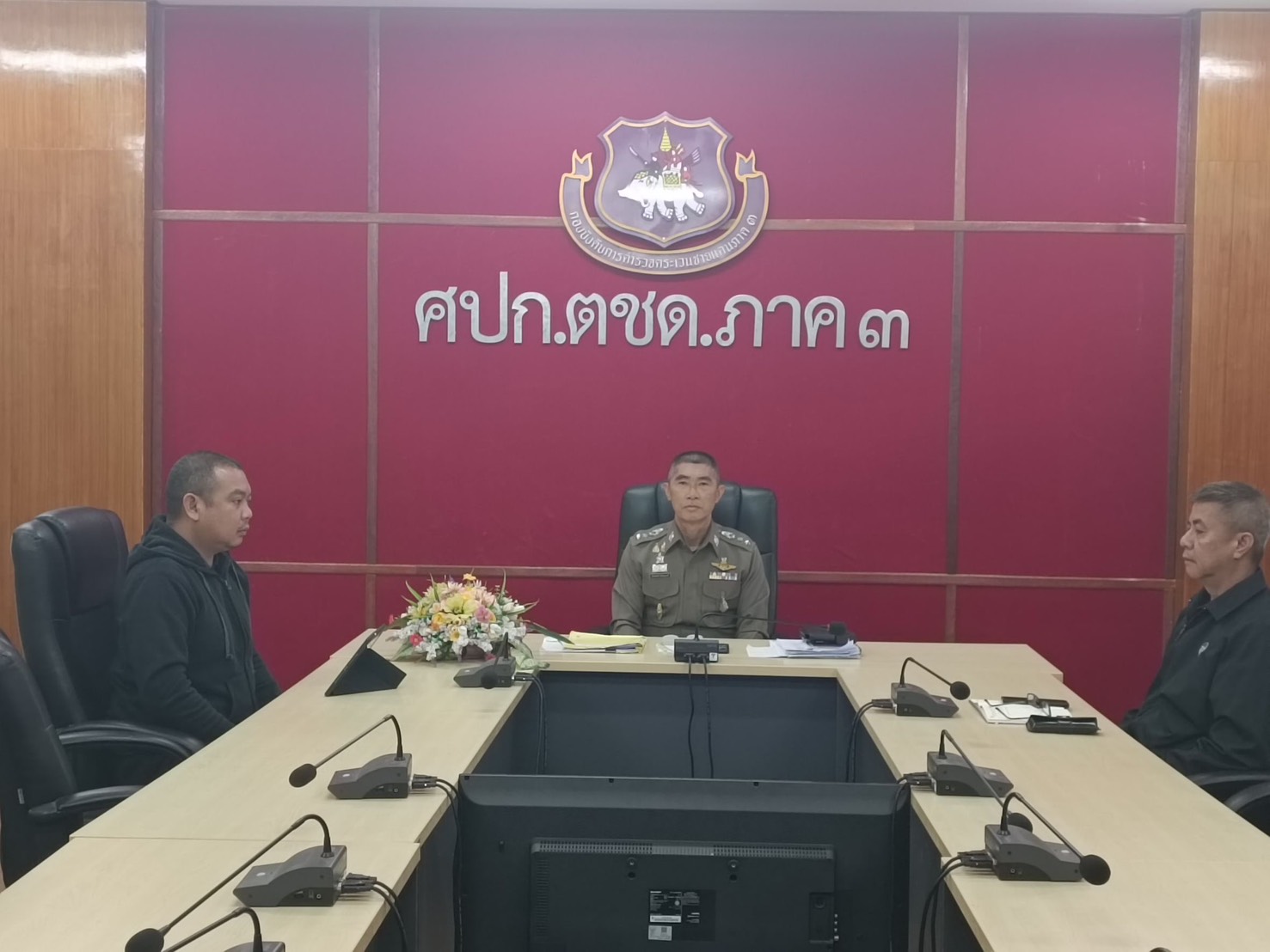 เมื่อ 9 ก.พ. 69 เวลา 10.00 น. พ.ต.อ.วิศาลพงศ์ สร้อยกุลบดี รอง ผบก.ตชด.ภาค 3 พร้อมด้วย เจ้าหน้าที่ที่เกี่ยวข้อง เข้าร่วมประชุมทางไกล ศปก.ตร. โดยมี พล.ต.ท.อนุชา รมยะนันทน์ ผู้ช่วย ผบ.ตร. เป็นประธาน ณ ห้องประชุม ศปก.ตชด.ภาค 3