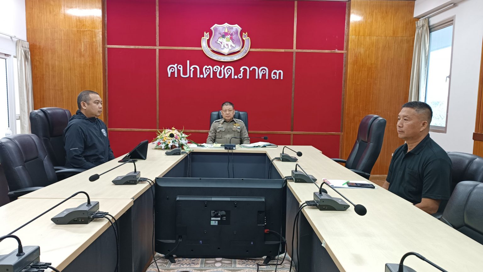 เมื่อ 16 ก.พ. 68 เวลา 09.00 น. พ.ต.อ.ศิระ ศรีศรากร รอง ผบก.ตชด.ภาค 3 พร้อมด้วย พ.ต.ท.วิมาณ ฉิมพล สว.ฝอ.บก.ตชด.ภาค 3 (ผงป.), ร.ต.ท.ประภาส พรมเพ็ชร รอง สว.ฝอ.บก.ตชด.ภาค 3(ขว.) และเจ้าหน้าที่ที่เกี่ยวข้อง เข้าร่วมประชุมทางไกล ศปก.ตร. เฝ้าฟังติดตามสถานการณ์ โดยมี พล.ต.ท.ศิลปคมณ์ เอี่ยมวงศ์ ผบช.ประจำ สง.ผบ.ตร. เป็นประธาน ณ ห้องประชุม ศปก.ตชด.ภาค 3