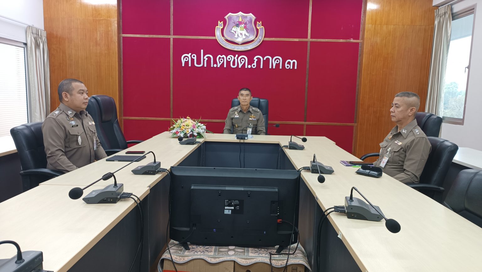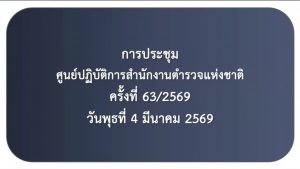 เมื่อ 4 มี.ค. 69 เวลา 09.00 น. พ.ต.อ.วิศาลพงศ์ สร้อยกุลบดี รอง ผบก.ตชด.ภาค 3พร้อมด้วย พ.ต.ท.สุขสันต์ อินทร์สุข สว.ฝอ.บก.ตชด.ภาค 3 (ขว.), พ.ต.ท.วิมาณ ฉิมพล สว.ฝอ.บก.ตชด.ภาค 3 (ผงป.) และเจ้าหน้าที่ที่เกี่ยวข้อง เข้าร่วมประชุมทางไกล ศปก.ตร. ติดตามสถานการณ์ โดยมี พล.ต.อ.สำราญ นวลมา รอง ผบ.ตร. เป็นประธาน ณ ห้องประชุม ศปก.ตชด.ภาค 3