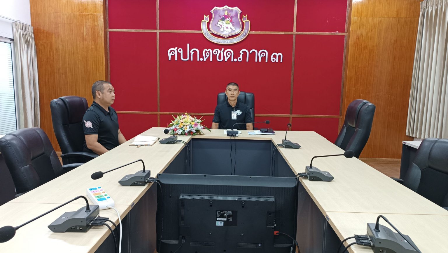 เมื่อ 20 เม.ย. 69 เวลา 09.00 น. พ.ต.อ.วิศาลพงศ์ สร้อยกุลบดี รอง ผบก.ตชด.ภาค 3 พร้อมด้วย พ.ต.ท.วิมาณ ฉิมพล สว.ฝอ.บก.ตชด.ภาค 3 (ผงป.) และเจ้าหน้าที่ที่เกี่ยวข้อง เข้าร่วมประชุมทางไกล ศปก.ตร. โดยมี พล.ต.ท. ศิลปคมณ์ เอี่ยมวงศ์ ผบช.ประจำ สง.ผบ.ตร. เป็นประธาน ณ ห้องประชุม ศปก.ตชด.ภาค 3