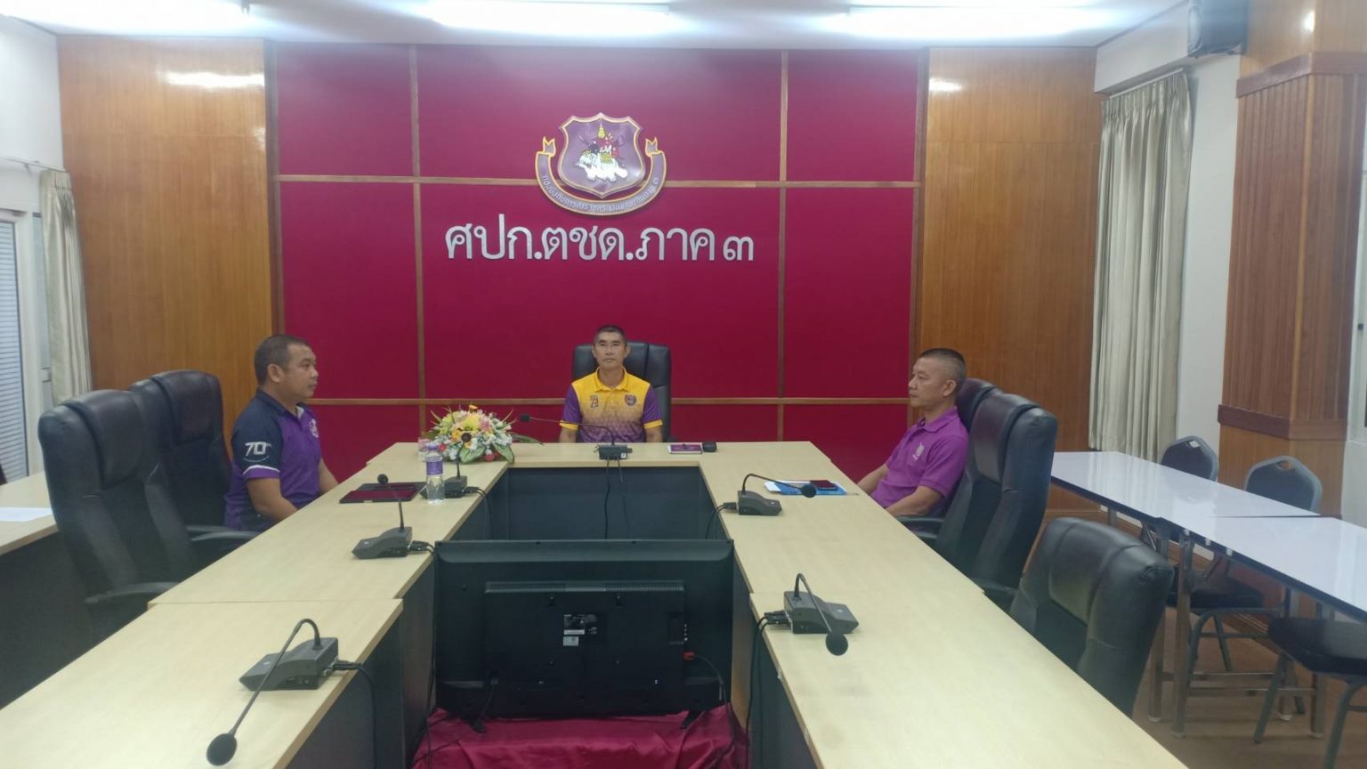 เมื่อ 21 มิ.ย. 67 เวลา 17.00 น. พ.ต.อ.วิศาลพงศ์ สร้อยกุลบดี รอง ผบก.ตชด.ภาค 3, สว.ฝอ.บก.ตชด.ภาค 3 (ผงป., กบ.) พร้อมด้วยเจ้าหน้าที่งานที่เกี่ยวข้อง เข้าร่วมประชุมทางไกล (Video Conference) เฝ้าฟังพิจารณาร่าง พ.ร.บ. งบประมาณรายจ่าย ประจำปีงบประมาณ พ.ศ.2568 (วาระที่ 1) ณ ห้องประชุม ศปก.ฯ โดยมี พล.ต.ต.ปรีดา สถาวร รอง ผบช.สกพ. เป็นประธานในระดับ ตร., พล.ต.ต.กัญชล อินทราราม รอง ผบช.ตชด. เป็นประธานในระดับ บช.ตชด.