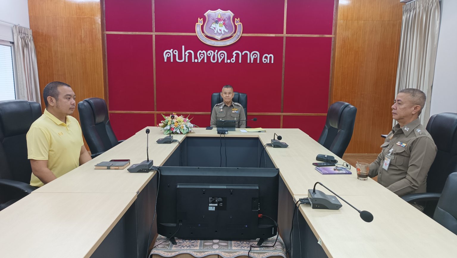 เมื่อ 18 พ.ย. 67 เวลา 09.00 น. พ.ต.อ.อภิชาติ รักพงษ์ รอง ผบก.ตชด.ภาค 3 พร้อมด้วยเจ้าหน้าที่งานที่เกี่ยวข้อง เข้าร่วมประชุมทางไกล (video conference) ขับเคลื่อน ศปก.ตร. เฝ้าฟังติดตามสถานการณ์ ณ ห้องประชุม ศปก.ตชด.ภาค 3