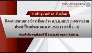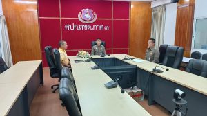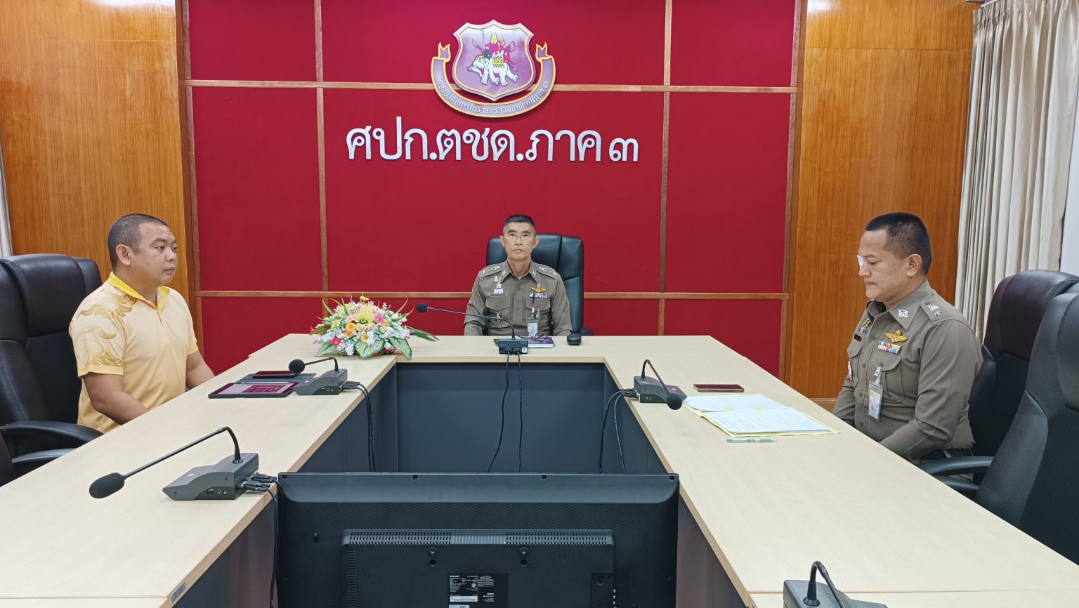 พ.ต.อ.วิศาลพงศ์ สร้อยกุลบดี รอง ผบก.ตชด.ภาค 3, สว.ฝอ.บก.ตชด.ภาค 3 (ผงป.), สว.ฝอ.บก.ตชด.ภาค 3 (กบ.) พร้อมด้วยเจ้าหน้าที่งานที่เกี่ยวข้อง เข้าร่วมประชุมทางไกล (Video Conference) ติดตามสถานการณ์การชี้แจง ร่าง พ.ร.บ.งบประมาณรายจ่ายประจำปีงบประมาณ พ.ศ.2568 (วาระที่ 2-3) โดยมี พล.ต.ท.นิธิธร จินตกานนท์ ผบช.ประจำ สง.ผบ.ตร./ หน.ส่วนอำนวยการและสนับสนุน ศปก.ตร. เป็นประธาน