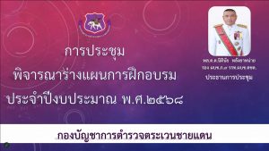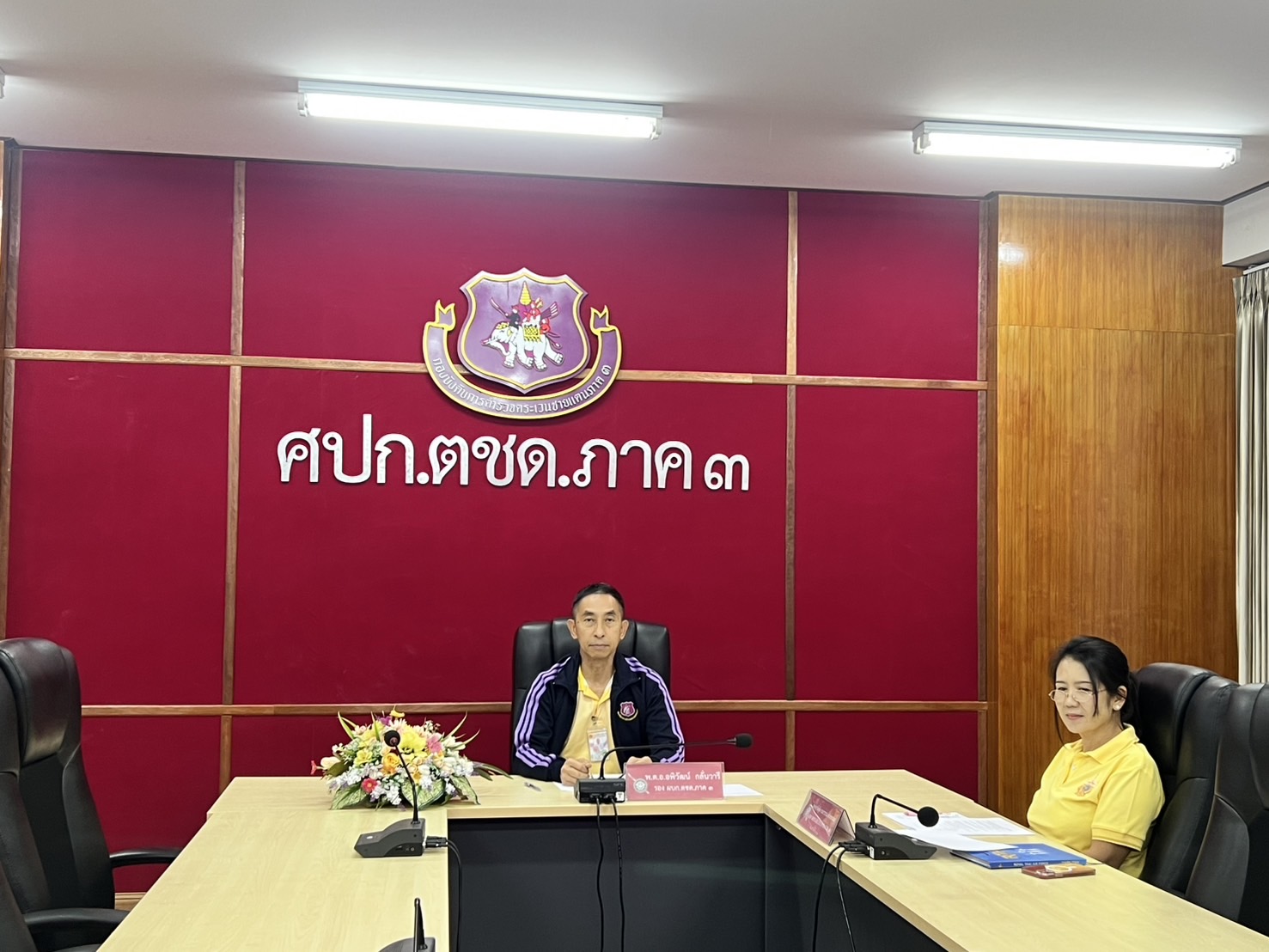 เมื่อ 11 ธ.ค. 67 เวลา 10.00 น. พ.ต.อ.อพิวัฒน์ กลั่นวารี รอง ผบก.ตชด.ภาค 3 และ พ.ต.ท.หญิง กนกวรรณ ต่วนชะเอม รอง ผกก.ฝอ.ฯ พร้อมด้วยเจ้าหน้าที่งานที่เกี่ยวข้อง เข้าร่วมประชุมทางไกล (video conference) เรื่องการพิจารณาแผนการฝึกอบรม ประจำปีงบประมาณ พ.ศ.2567 ณ ห้องประชุม ศปก.ตชด.ภาค 3