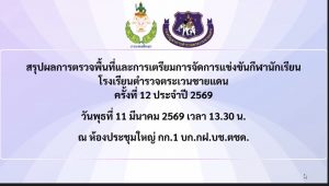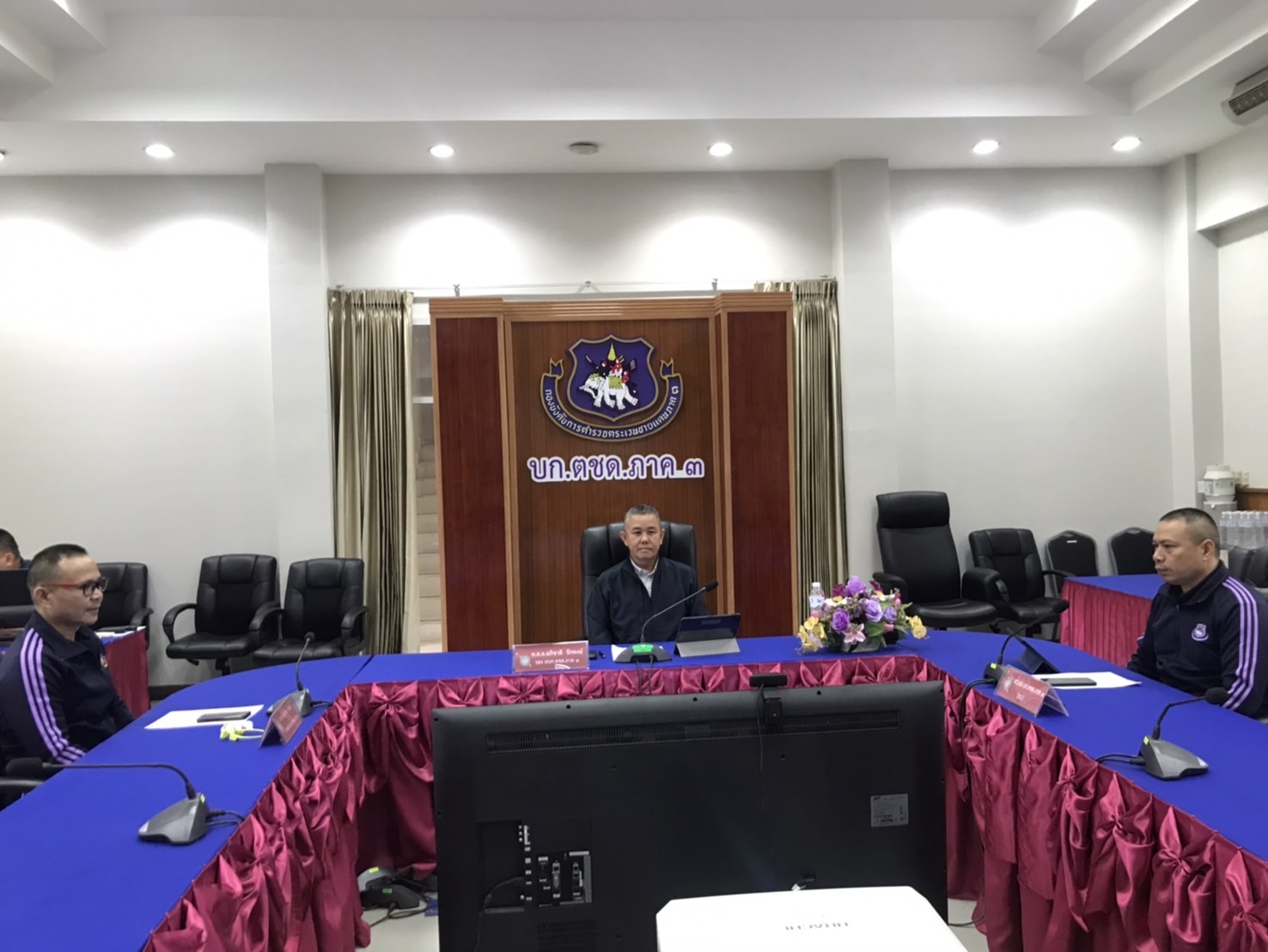 พ.ต.อ.อภิชาติ รักพงษ์ รอง ผบก.ตชด.ภาค 3, พ.ต.อ.บันดาล บัวแดง ผกก.ฝอ.บก.ตชด.ภาค 3, พ.ต.ท.สมพร รามพุตซา สว.ฝอ.บก.ตชด.ภาค 3 (กร.) ร่วมประชุมสรุปผลการตรวจพื้นที่และการจัดเตรียมการแข่งขันกีฬานักเรียน รร.ตชด. ครั้งที่ 12 ประจำปี 2569 ผ่านระบบออนไลน์ (zoom meeting)