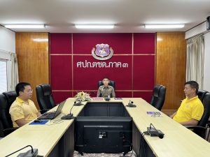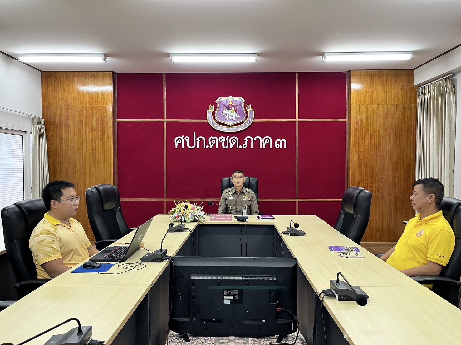 เมื่อ 10 ต.ค.67 เวลา 10.00 น. พ.ต.อ.วิศาลพงศ์ สร้อยกุลบดี รอง ผบก.ตชด.ภาค 3 พร้อมเจ้าหน้าที่ที่เกี่ยวข้อง ร่วมประชุมเตรียมการต้อนรับเเละการรักษาความปลอดภัย นายพลากร สุวรรณรัฐ องคมนตรี ผู้เเทนพระองค์ ผ่านระบบ zoom meeting ณ ที่ตั้งหน่วย