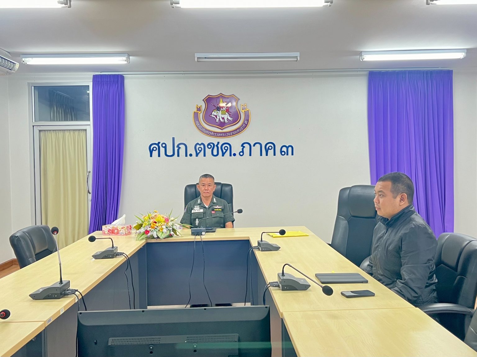 เข้าร่วมประชุมเตรียมการรับเสด็จเเละการถวายความปลอดภัย สมเด็จพระเจ้าน้องนางเธอ เจ้าฟ้าจุฬาภรณวลัยลักษณ์ อัครราชกุมารี กรมพระศรีสวางควัฒน วรขัตติราชนารี เเละการต้อนรับ รักษาความปลอดภัย นายพลากร สุวรรณรัฐ องคมนตรี ผ่านการประชุมทางไกลผ่านจอภาพ(VTC) ด้วยระบบ Zoom meeting ณ ห้องประชุมดารา รัศมี 2 บก.ตชด.ภาค 3 โดยมี ผบ.มทบ.33/ผอ.กอร.ถปภ.ทภ.3 เป็นประธานการประชุม