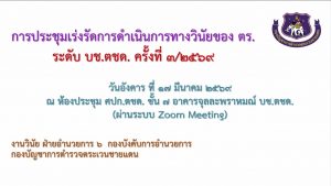 เมื่อ 17 มี.ค.69 เวลา 10.30 น. พ.ต.อ.รังสิมันต์ สงเคราะห์ธรรม รอง ผบก ตชด.ภาค 3 พร้อมด้วย ร.ต.อ.หญิง แพรวนภา แซ่เตีย หน.กลุ่มงาน นกว.ฝอ.ฯ ได้เข้าร่วมประชุมเร่งรัดวินัย ระดับ บช.ตชด. โดยมี พล.ต.ต.กิตติ์ธเนศ ธนนันท์ทวีสิน รอง ผบช.ตชด. เป็นประธานการประชุม