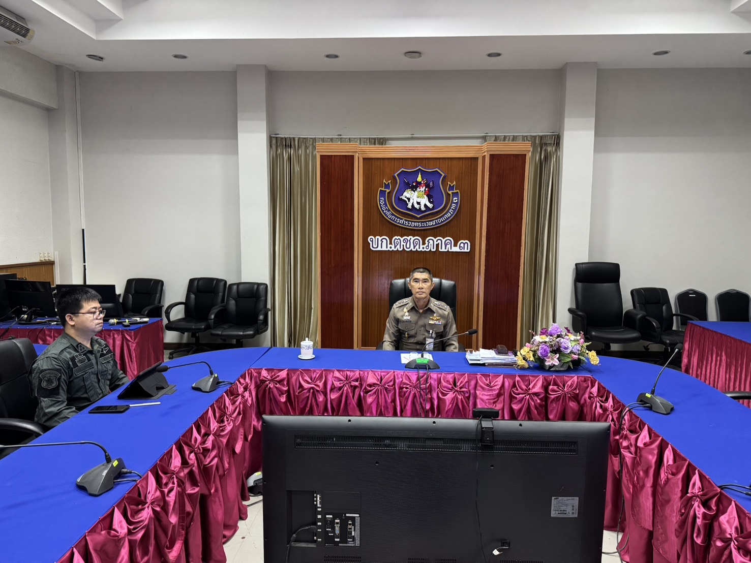 เมื่อวันที่ 27 มี.ค.69 เวลา 09.00 น. พ.ต.อ.วิศาลพงศ์ สร้อยกุลบดี รอง ผบก.ตชด.ภาค3 พร้อมด้วย ร.ต.อ.เฉลิมชัยทรายหมอ รอง หน.ศอ.ปส.บก.ตชด.ภาค 3 เป็นผู้แทนหน่วย เข้าร่วมประชุม ศอ.ปส.ตร. (ผ่านระบบ Video Conference) ครั้งที่ 6/2569 โดยมี พล.ต.ท.สมประสงค์ เย็นท้วม ผู้ช่วย ผบ.ตร./ รอง ผอ.ศอ.ปส.ตร. เป็นประธาน