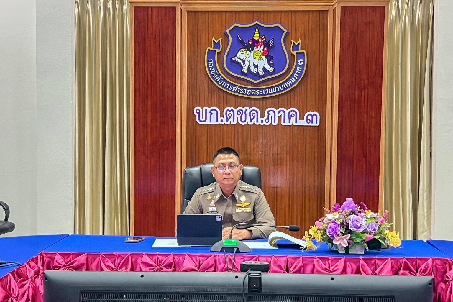 - เมื่อ 22 ส.ค.68 เวลา 08.30 น. พ.ต.อ.รังสิมันต์ สงเคราะห์ธรรม รอง ผบก.ตชด.ภาค 3 พร้อมด้วย พ.ต.ท.วิมาณ ฉิมพล สว.ฝอ.บก.ตชด.ภาค 3 (ผงป.) เข้าร่วมประชุมผ่านระบบทางไกลผ่านจอภาพ เพื่อรับฟังข้อชี้แจงกรอบแนวทางการจัดกำลังป้องกันชายแดนประจำปีงบประมาน พ.ศ.2569 ณ ห้องประชุมดารารัศมี 3 บก.ตชด.ภาค 3