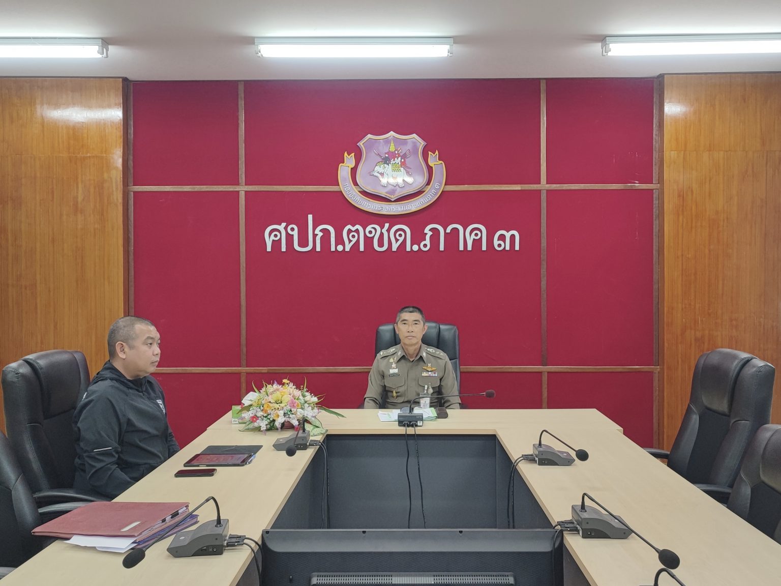 เมื่อ 3 ก.พ.69 เวลา 14.00 น. พ.ต.อ.วิศาลพงศ์ สร้อยกุลบดี รอง ผบก.ตชด.ภาค 3 พร้อมด้วย พ.ต.ท.วิมาณ ฉิมพล สว.ฝอ.ฯ (ผงป.) เข้าร่วมเฝ้าฟังการประชุมของศูนย์ปราบปรามการลักลอบตัดไม้ทำลายป่า ทรัพยากรธรรมชาติและสิ่งแวดล้อม ตร. (ศปทส.ตร.) ครั้งที่ 1/2569 เพื่อการติดตามการปฏิบัติงานของ ศปทส.ตร. ประจำปีงบประมาณ พ.ศ.2569 โดยมี พล.ต.อ.กรไชย คล้ายคลึง รอง ผบ.ตร./ผอ.ศปทส.ตร. เป็นประธานการประชุม