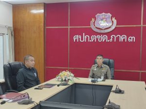 เมื่อ 3 ก.พ.69 เวลา 14.00 น. พ.ต.อ.วิศาลพงศ์ สร้อยกุลบดี รอง ผบก.ตชด.ภาค 3 พร้อมด้วย พ.ต.ท.วิมาณ ฉิมพล สว.ฝอ.ฯ (ผงป.) เข้าร่วมเฝ้าฟังการประชุมของศูนย์ปราบปรามการลักลอบตัดไม้ทำลายป่า ทรัพยากรธรรมชาติและสิ่งแวดล้อม ตร. (ศปทส.ตร.) ครั้งที่ 1/2569 เพื่อการติดตามการปฏิบัติงานของ ศปทส.ตร. ประจำปีงบประมาณ พ.ศ.2569 โดยมี พล.ต.อ.กรไชย คล้ายคลึง รอง ผบ.ตร./ผอ.ศปทส.ตร. เป็นประธานการประชุม