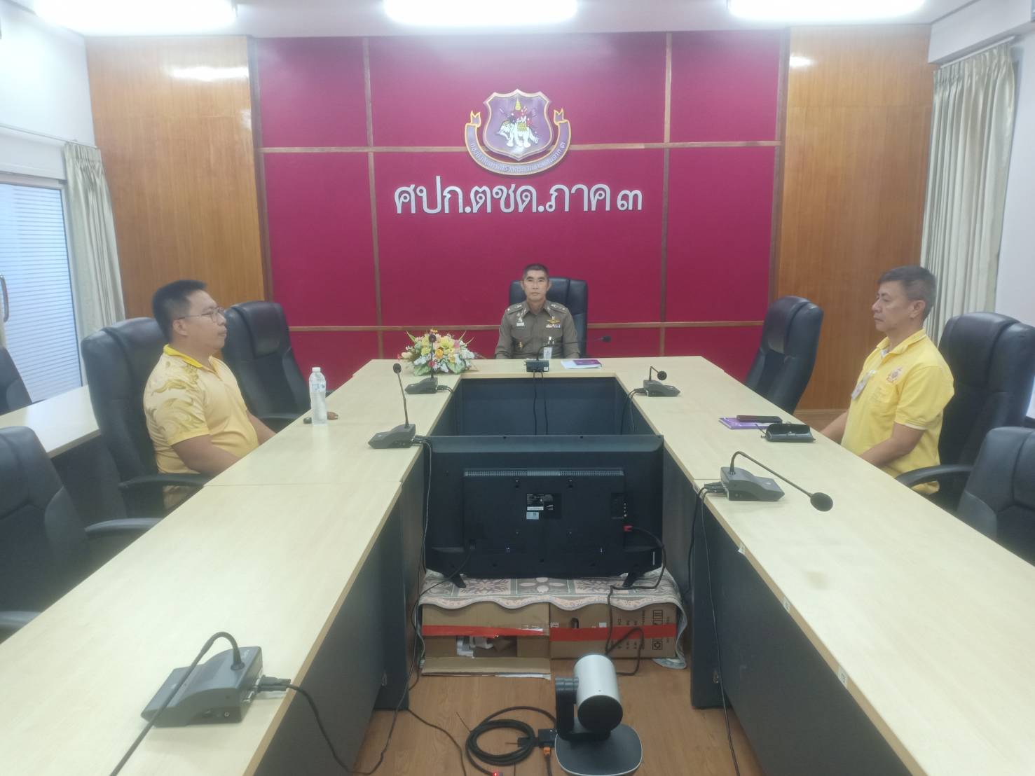 เมื่อ 15 พ.ย.67 เวลา 10.30 น. พ.ต.อ.วิศาลพงศ์ สร้อยกุลบดี รอง ผบก.ตชด.ภาค 3 พร้อมด้วย พ.ต.ท.สุขสันต์ อินทร์สุข สว.ฝอ.ฯ(ขว.) และ ร.ต.อ.อนุสรณ์ ปัญญา รอง สว.ฝอ.ฯ(ผงป.) เข้าร่วมเฝ้าฟังการประชุมติดตามสถานการณ์ ตรวจสอบความพร้อม และสั่งการการรักษาความสงบเรียบร้อย และอำนวยความสะดวกการจราจรการจัดงานประเพณีลอยกระทง และการแถลงผลการปฏิบัติการระดมกวาดล้างอาชญากรรมก่อนวันลอยกระทง ประจำปี พ.ศ.2567 โดยมี พล.ต.อ.กิตติ์รัฐ พันธุ์เพ็ชร์ ผบ.ตร. เป็นประธานการประชุมฯ
