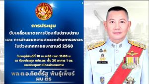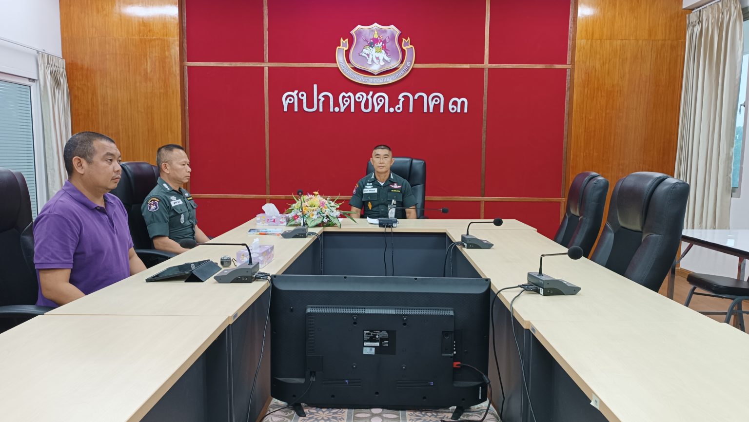 เมื่อ 10 เม.ย.68 เวลา 15.00 น. พ.ต.อ.วิศาลพงศ์ สร้อยกุลบดี รอง ผบก.ตชด.ภาค 3 พร้อมด้วย พ.ต.ท.สุขสวัสดิ์ ไชยสาร รอง ผกก.ฝอ.ฯ และ พ.ต.ท.วิมาณ ฉิมพล สว.ฝอ.ฯ(ผงป.) เข้าร่วมเฝ้าฟังการประชุมมาตรการป้องกันปราบปรามและอำนวยความสะดวกในช่วงเทศกาลสงกรานต์ 2568 โดยมี พล.ต.อ.กิตติ์รัฐ พันธุ์เพชร ผบ.ตร. เป็นประธานการประชุมฯ