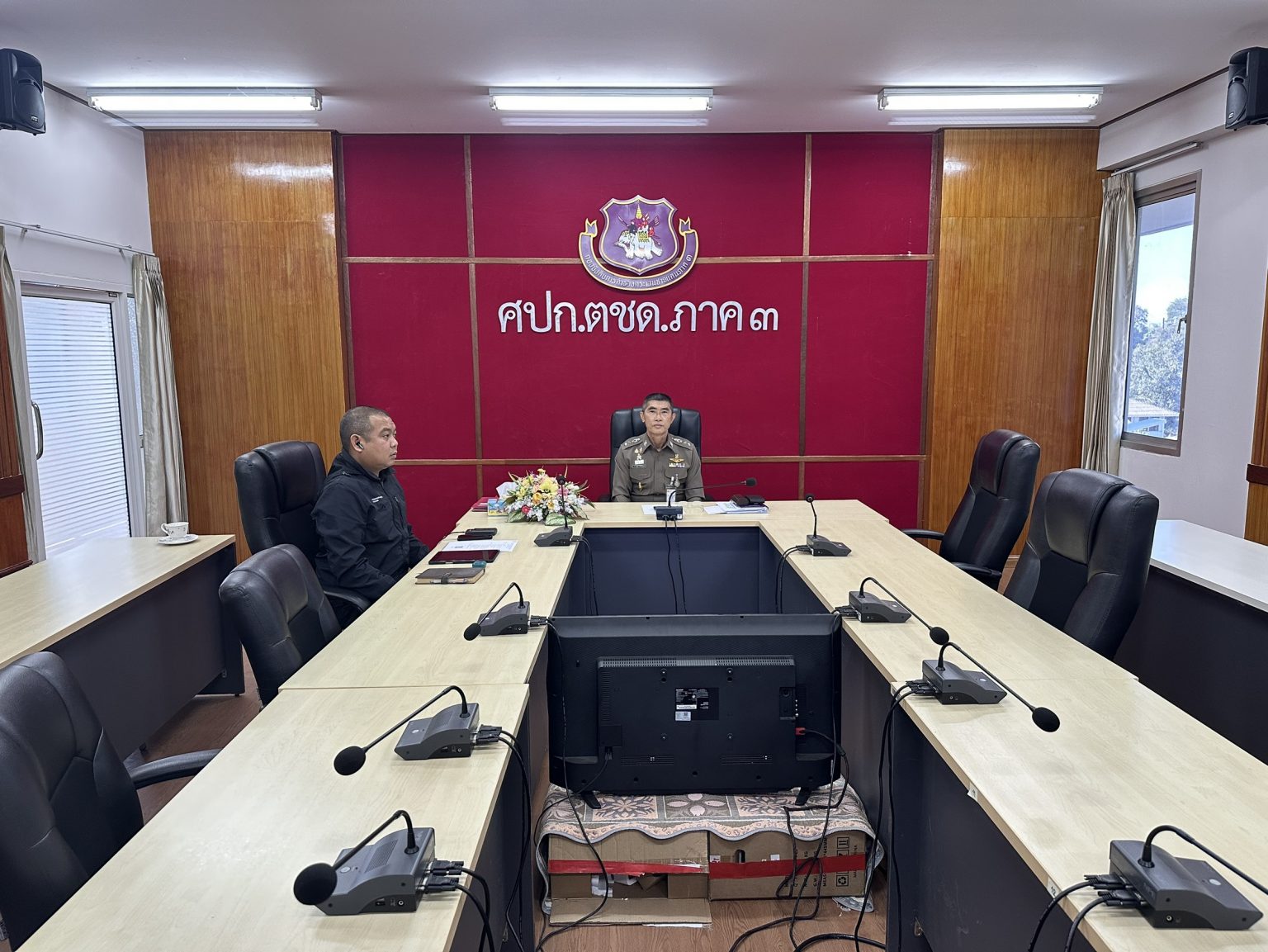 เมื่อ 29 ธ.ค.68 เวลา 10.00 น. พ.ต.อ.วิศาลพงศ์ สร้อยกุลบดี รอง ผบก.ตชด.ภาค 3 พร้อมด้วยพ.ต.ท.วิมาณ ฉิมพล สว.ฝอ.ฯ (ผงป.) ร่วมเฝ้าฟังประชุมติดตามผลการปฏิบัติงานของศูนย์ต่อต้านการค้ามนุษย์ ตร. (ศตคม.ตร.) ครั้งที่ 1/2569 โดยมี พล.ต.อ.ธัชชัย ปิตะนีละบุตร รอง ผบ.ตร./ผอ.ศตคม.ตร. เป็นประธานการประชุมฯ