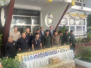 เมื่อวันที่ 13 พ.ย.68 เวลา 10.00 น. พ.ต.อ.รังสิมันต์ สงเคราะห์ธรรม รอง ผบก.ตชด.ภาค 3 ร่วมแถลงข่าวผลการจับกุมนักค้ายาเสพติดรายสำคัญ กรณี บก.ปส.3 จับกุมผู้ต้องหา 2 ราย พร้อมของกลางยาเพสติดให้โทษประเภทที่ 1 (ยาบ้าหรือเมทแอมเฟตามีน) จำนวน 2,100,000 เม็ด และร่วมประชุมหารือสกัดกั้นการลำเลียงยาเสพติดชายแดนภาคเหนือ โดยมี พล.ต.ท.อาชยน ไกรทอง ผบช.ปส. เป็นประธาน ณ บก.ปส.3 ศูนย์ราชการจังหวัดเชียงใหม่ อ.เมือง จว.เชียงใหม่