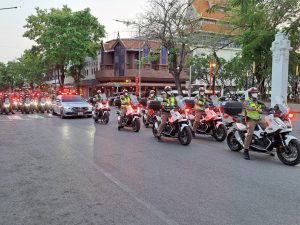 เมื่อ 8 เม.ย.69 เวลา 18.00 น. พ.ต.อ.วิศาลพงศ์ สร้อยกุลบดี รอง ผบก.ตชด.ภาค 3 เป็นผู้แทน ผบก.ตชด.ภาค 3 เข้าร่วม พิธี ปล่อยแถวระดมกวาดล้างอาชญากรรม ส่งเสริมการท่องเที่ยวและ ลดอุบัติเหตุทางถนน ในช่วงเทศกาลสงกรานต์ 2569 ณ บริเวณลานอนุสาวรีย์สามกษัตริย์ อ.เมือง จ.เชียงใหม่ โดยมี พล.ต.ท.กฤตธาพล ยี่สาคร ผบช.ภ.5 เป็นประธานในพิธี
