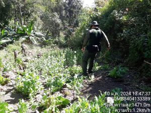 เมื่อวันที่ 4 ม.ค.67 ภายใต้การอำนวยการของ พล.ต.ต.วรพัฒน์ บุญมา ผบก.ตชด.ภาค 3 มอบหมายให้ ศอ.ปส.บก.ตชด.ภาค 3 นำโดย ร.ต.อ.เฉลิมชัย ทรายหมอ รอง.หน.ชป.ศอ.ปส ตชด.ภาค 3 พร้อมพวกรวม 26 นาย ออกปฏิบัติภารกิจลาดตระเวนพิสูจน์ทราบพื้นที่ปลูกฝิ่นและตัดทำลายไร่ฝิ่นในห้วงเดือน ม.ค. 67 ได้ทำการพิสูจน์ทราบแปลงฝิ่น จำนวน 4 แปลง เนื้อที่รวมประมาณ 2.33 ไร่ ในโครงการควบคุมพื้นที่ลักลอบปลูกฝิ่น ในพื้นที่ดอยม่อนอังเกตุ ต.ป่าแป๋ อ.แม่แตง , ต.ยั้งเมิน อ.สะเมิง จ.เชียงใหม่ , พื้นที่ แม่ยะ ต.แม่ฮี้ , ต.โป่งสา อ.ปาย จ.แม่ฮ่องสอน ผลการพิสูจน์ทราบ พบแปลงฝิ่นจำนวน 3 แปลง ไม่พบพื้ชฝิ่นจำนวน 1 แปลง ได้ดำเนินการตัดทำลายเสร็จสิ้นเป็นที่เรียบร้อยแล้ว