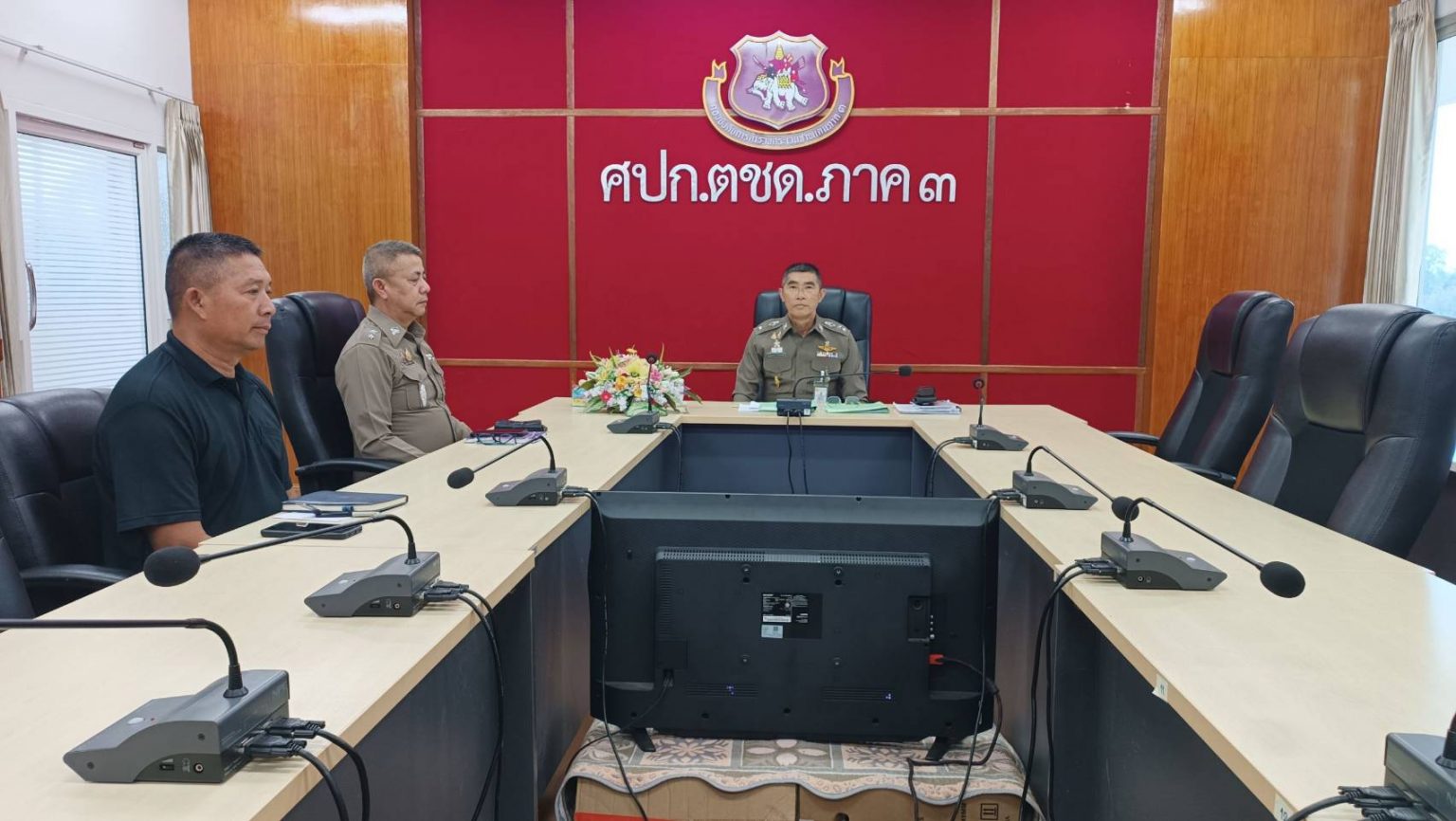 เมื่อ 251330 ธ.ค.68 พ.ต.อ.วิศาลพงศ์ สร้อยกุลบดี รอง ผบก.ตชด.ภาค 3 พร้อมด้วย พ.ต.ท.สุขสันต์ อินทร์สุข สว.ฝอ.บก.ตชด.ภาค 3 (ขว.) เฝ้าฟังการประชุมขับเคลื่อนการบริหารราชการงานสืบสวนสอบสวนของ ตร. ผ่านระบบ Zoom Meeting ณ ห้องประชุม ศปก.ตชด.ภาค 3 โดยมี พล.ต.อ.ธนา ชูวงศ์ รอง ผบ.ตร. (สส) เป็นประธานการประชุม