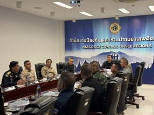 เมื่อ 26 ส.ค.68 เวลา 14.00 น. พ.ต.อ.รังสิมันต์ สงเคราะห์ธรรม รอง ผบก.ตชด.ภาค 3 ร่วมแถลงข่าวผลการจับกุมนักค้ายาเสพติดรายสำคัญ และร่วมประชุม การเตรียมการปฏิบัติการปิดล้อมตรวจค้นพื้นที่เป้าหมายผู้ค้ายาเสพติดรายสำคัญ โดยมี พล.ต.ท.ภาณุรัตน์ หลักบุญ เลขาธิการ ป.ป.ส. เป็นประธาน ณ สำนักงาน ป.ป.ส.ภาค 5 อ.เมือง จว.เชียงใหม่
