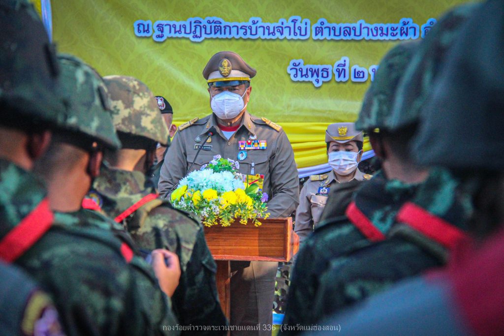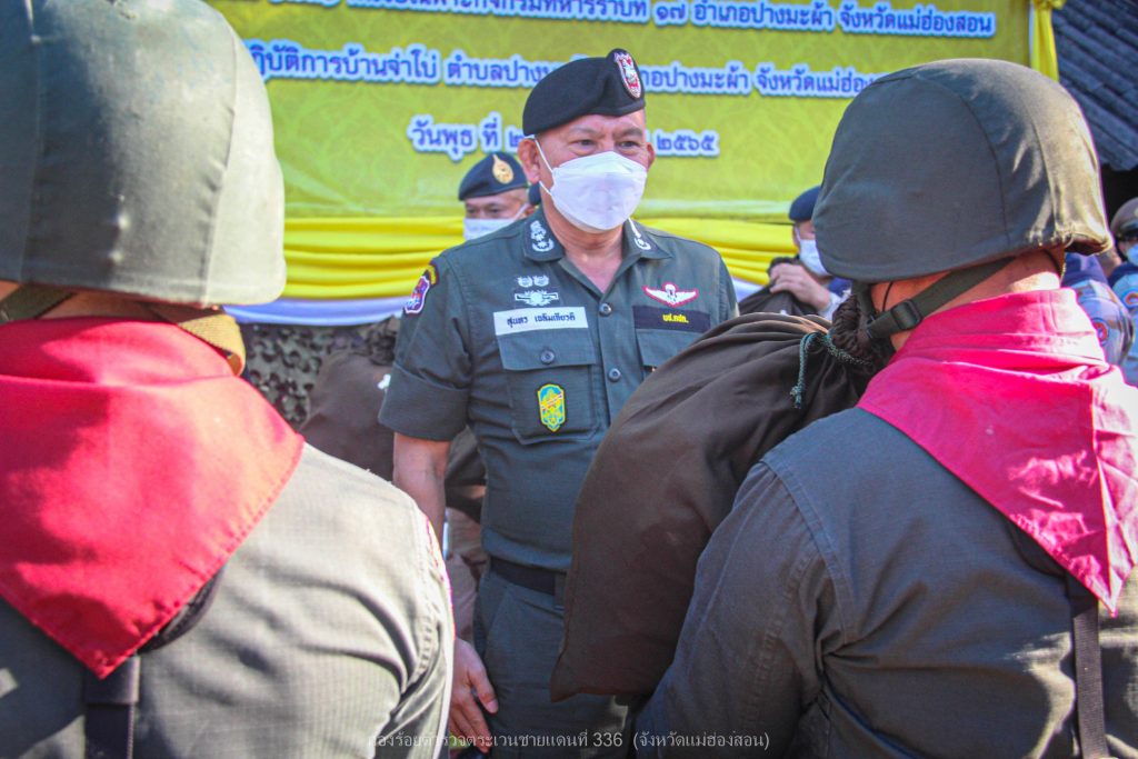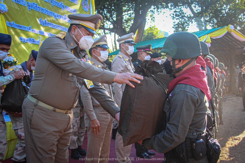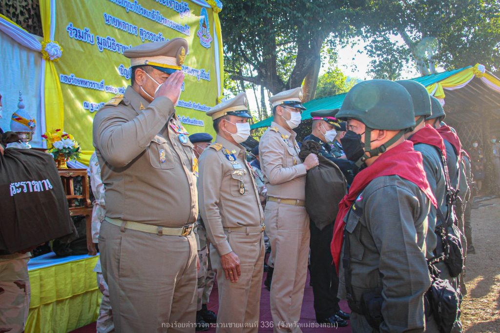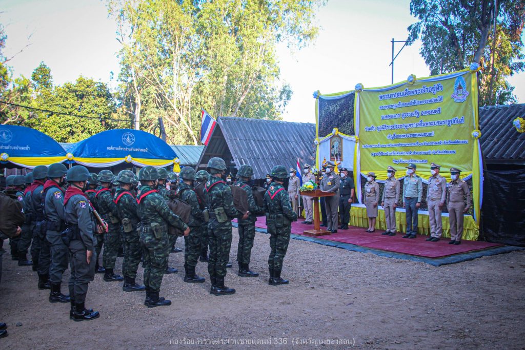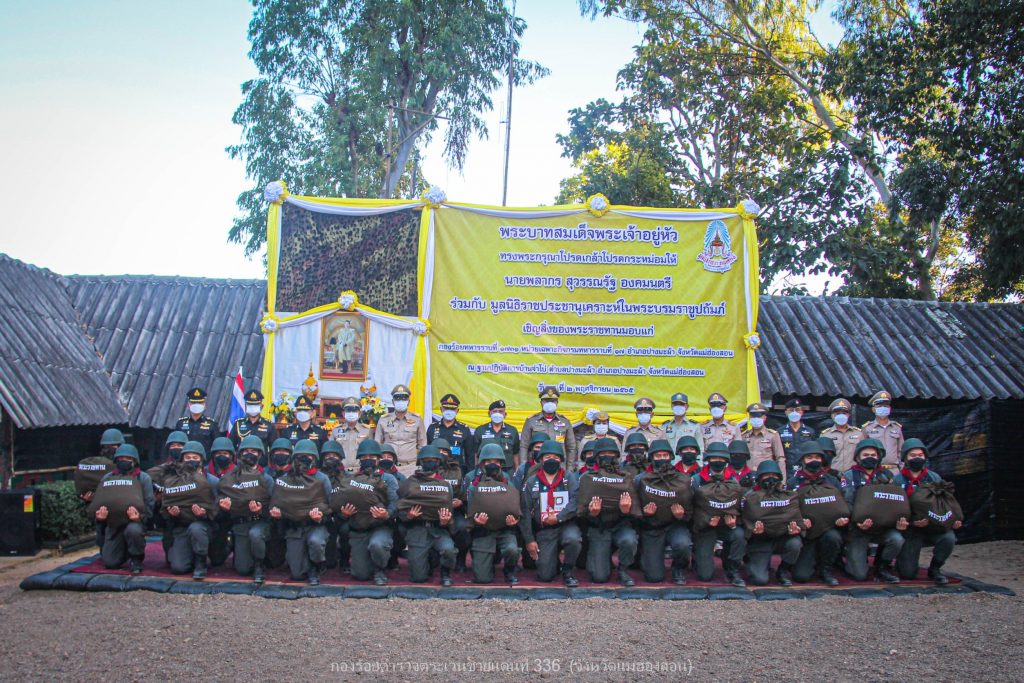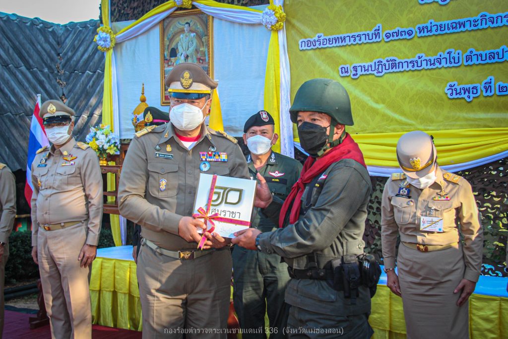 เมื่อ 2 พ.ย.65 เวลา 16.00 ย. พระบาทสมเด็จพระเจ้าอยู่หัว ทรงพระกรุณาโปรดเกล้าโปรดกระหม่อมให้ นายพลากร สุวรรณรัฐ องคมนตรี และ พล.ต.ต.สุนทร เฉลิมเกียรติ รอง ผบช.ตชด. พร้อมคณะติดตาม ร่วมกับ มูลนิธิราชประชานุเคราะห์ในพระบรมราชูปถัมภ์ เชิญสิ่งของพระราชทานมอบแก่ ตำรวจ (กองร้อยตำรวจตระเวนชายแดนที่ 336) และ ทหาร (กองร้อยทหารราบที่ 1731 หน่วยเฉพาะกิจกรมทหารราบที่ 17) เพื่อเป็นขวัญและกำลังใจแก่เจ้าหน้าที่ตำรวจตระเวนชายแดน ทหาร และเจ้าหน้าที่ผู้ปฏิบัติภารกิจป้องกันชายแดนประเทศ ด้วยความเสียสละ อดทน ทุ่มเทกำลังกายกำลังใจเพื่อประเทศชาติ โดยมี พ.ต.อ.อพิวัฒน์ กลั่นวารี รอง ผบก.ตชด.ภาค 3, พ.ต.ท.ผดุงเกียรติ ปัณฑรนนทกะ รอง ผกก.ตชด.33 และ พ.ต.ท.ธวัชชัย สุรินต๊ะ ผบ.ร้อย ตชด.336 พร้อมข้าราชการตำรวจรวม 30 นาย ร่วมให้การต้อนรับ พร้อมกันนี้ได้รับพร้อมกันนี้ได้รับฟังการบรรยายสรุปสถานการณ์ในพื้นที่รับผิดชอบ ณ ฐานปฏิบัติการบ้านจ่าโบ่ อ.ปางมะผ้า จว.แม่ฮ่องสอน ผลการปฏิบัติเป็นไปด้วยความเรียบร้อย