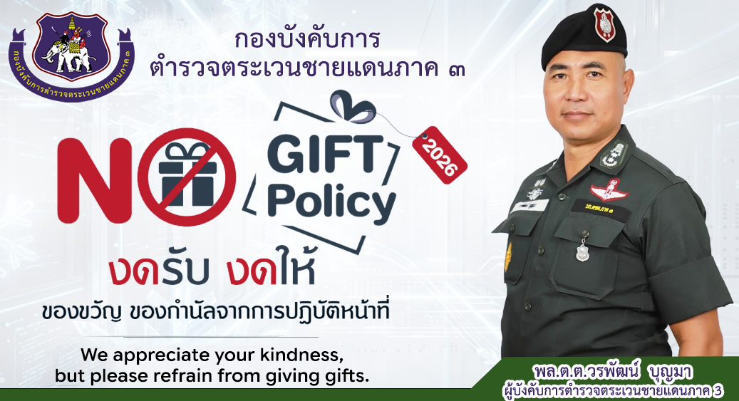 ประกาศเจตนารมณ์ไม่รับของกำนัล 2569 นโยบาย No Gift Policy ปี 2569 กองบังคับการตำรวจตระเวนชายแดนภาค 3 ยึดมั่นในนโยบาย “งดรับ – งดให้ ของขวัญและของกำนัลจากการปฏิบัติหน้าที่” เพื่อส่งเสริมการทำงานด้วย ความโปร่งใส ความซื่อสัตย์สุจริต และสร้าง วัฒนธรรมองค์กรที่เป็นแบบอย่างที่ดี ร่วมกันสร้างองค์กรแห่งคุณธรรมและความโปร่งใสContinue Reading